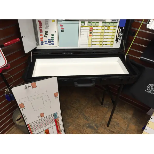 The dry erase surface has space for size-up notes, strategic & tactical planning, assignments, PAR, special hazards, tactical considerations etc..