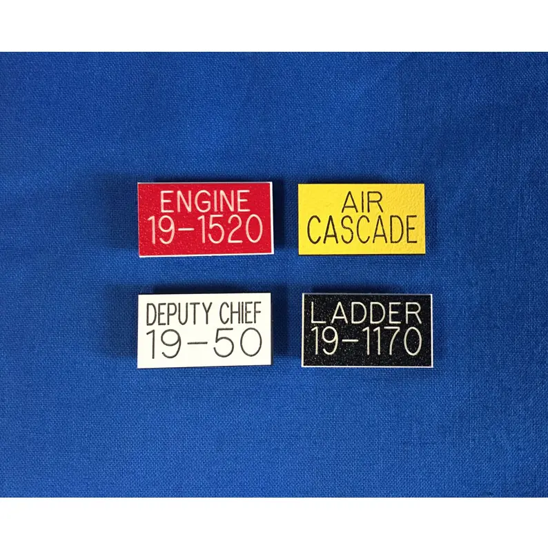 Included are 50 custom engraved magnetic tags representing your apparatus and officers. These tags are typically engraved with the Radio designations of all Department Officers, Apparatus, as well as common Tasks & Mutual Aid Companies. If less than 50 tags are needed, dry erasable white blanks will be supplied to bring the total up to 50.