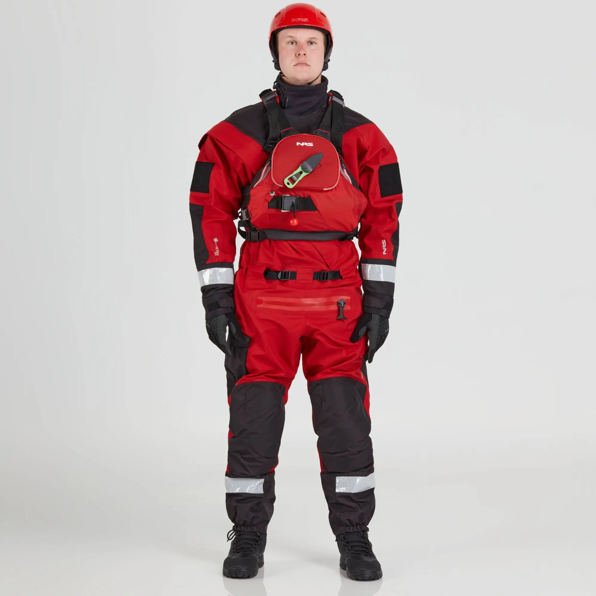 The NRS Ascent SAR GTX Dry Suit combines a streamlined design with superior waterproof-breathable fabric construction. It provides both the protection rescue professionals need and the durability required to handle unforgiving environments.