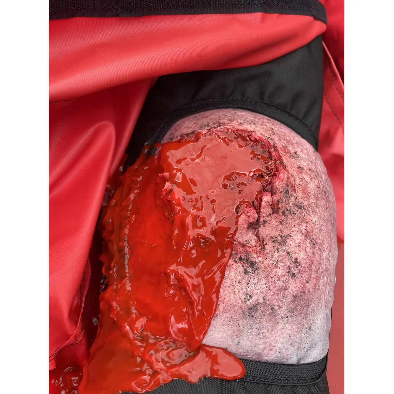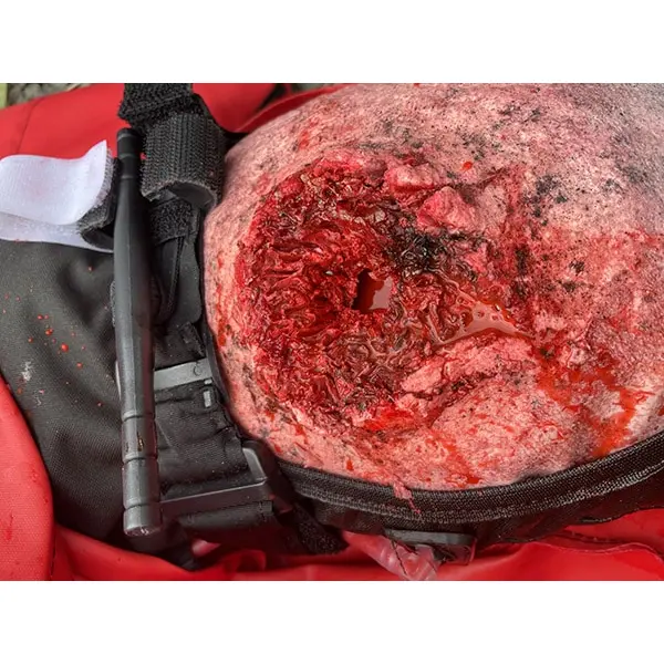 The traumatic open wound can help you to train the correct application of a tourniquet or wound packing. The trainer controls the amount of blood pumping through the wound and can stop the blood when they feel the trainee has treated the patient correctly.