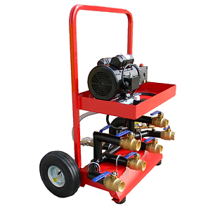 The Streamlight® Flamefighter® (Electric) Hose Tester, complies with NFPA standards, is for 1-1/2″ or 2-1/2″ connectors, and is capable of testing up to 6″ diameter hose. (Adapters sold separately). A built-in pressure washer is optional and includes 50 ft. of 3/8” non-marking hose, quick release heavy duty wand & handle, and a stainless steel nozzle with stream straightener.